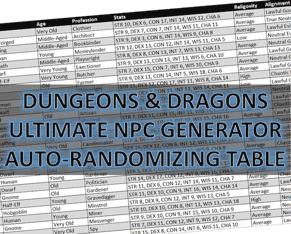 D D Ultimate Npc Generator For Dnd Pathfinder Rpgs Etsy